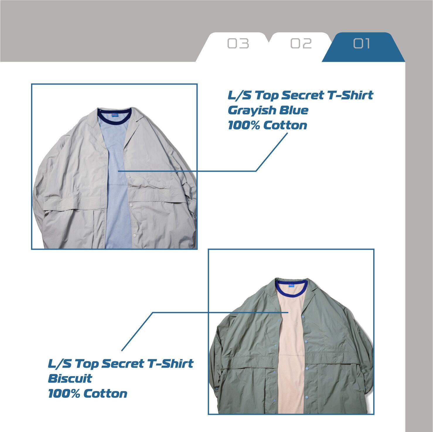L/S TOP SECRET T-SHIRT / GRAYISH BLUE