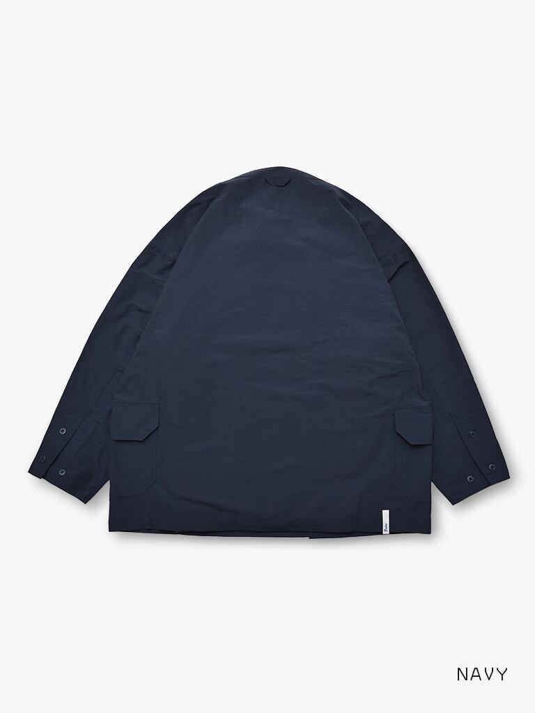左胸に箱ポケット、脇にはフラップ付きパッチポケット。