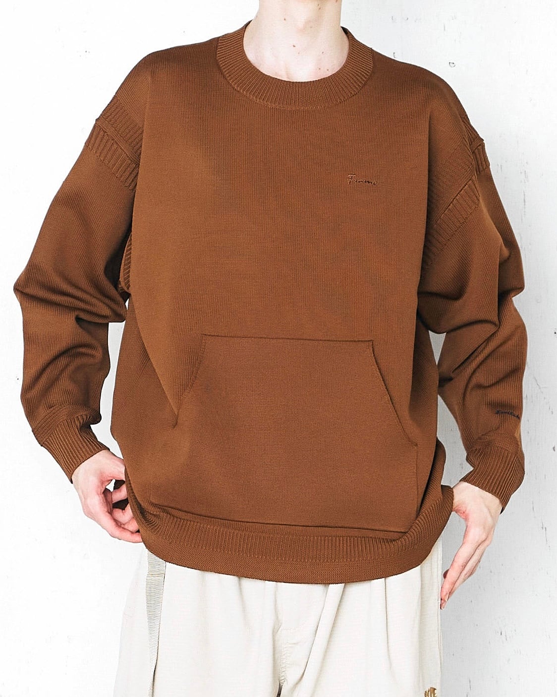 KANGAROO POCKET KNIT PULLOVER / BROWN