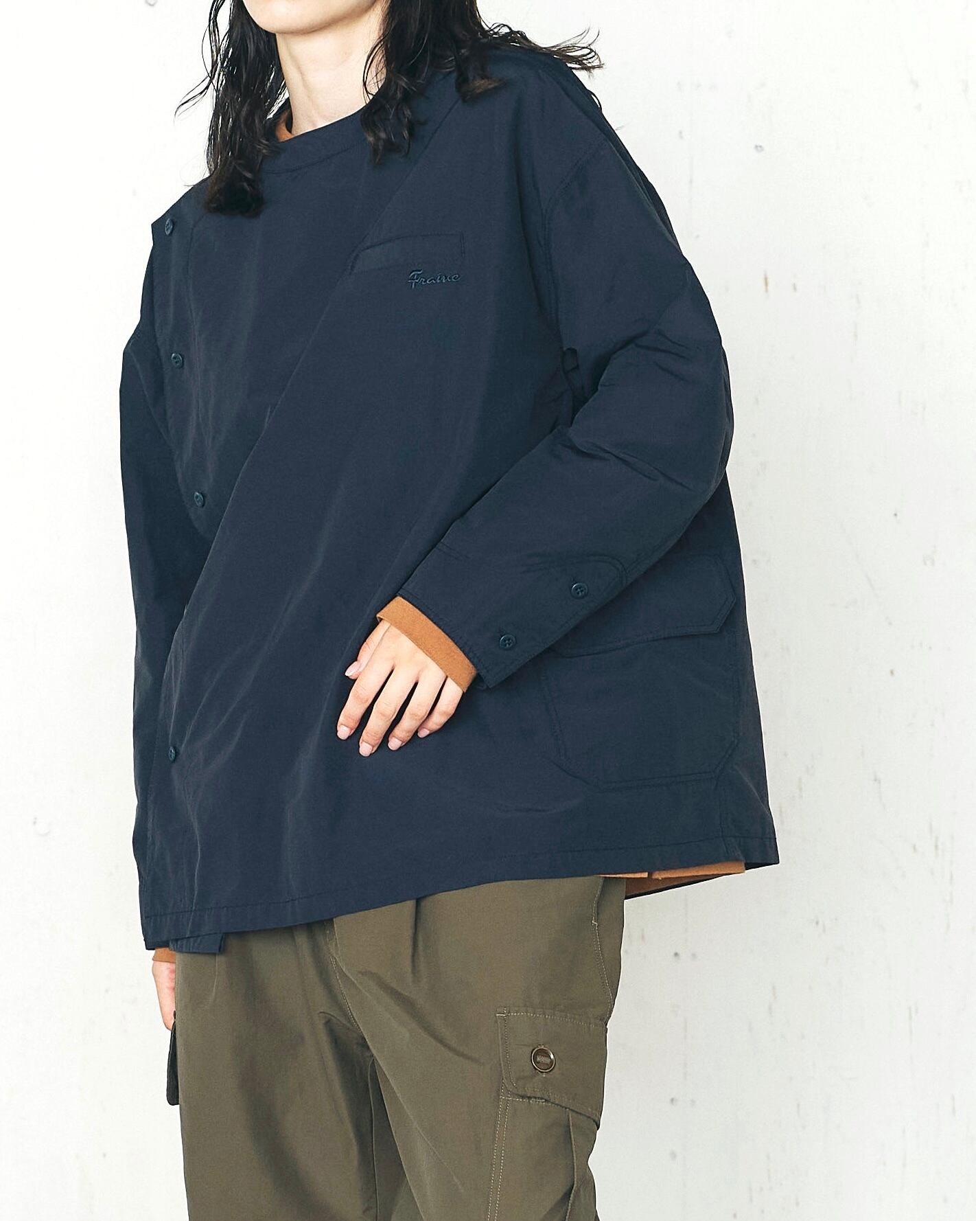 バストトップを目立ちにくくした胸ポケットがユニークで機能的なアイテム。