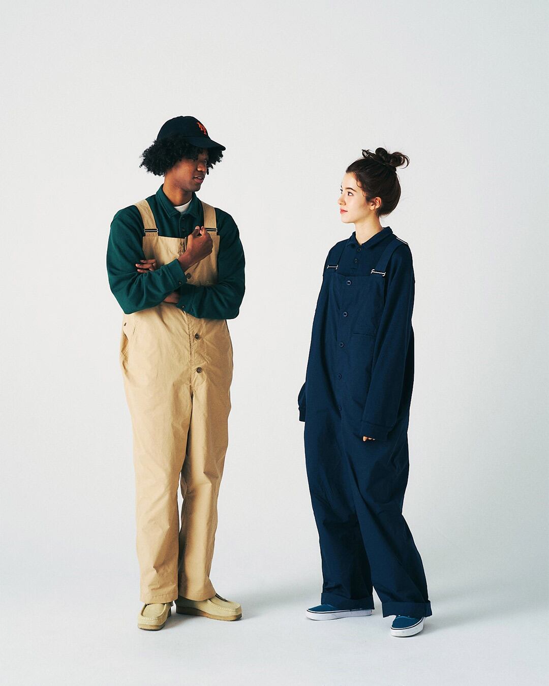 張り感の有る丈夫なナイロンコットン素材を使用したデッキパンツタイプのオーバーオール。