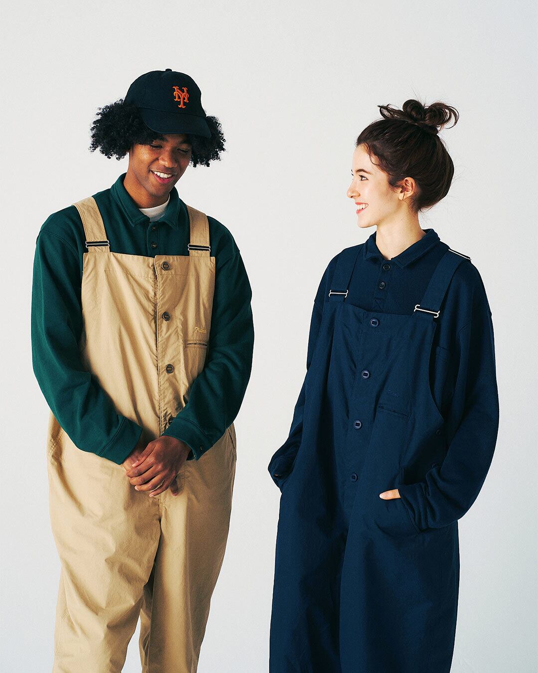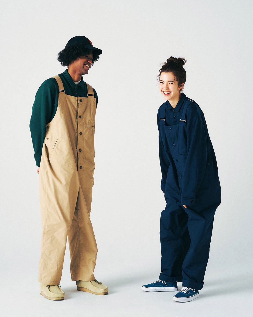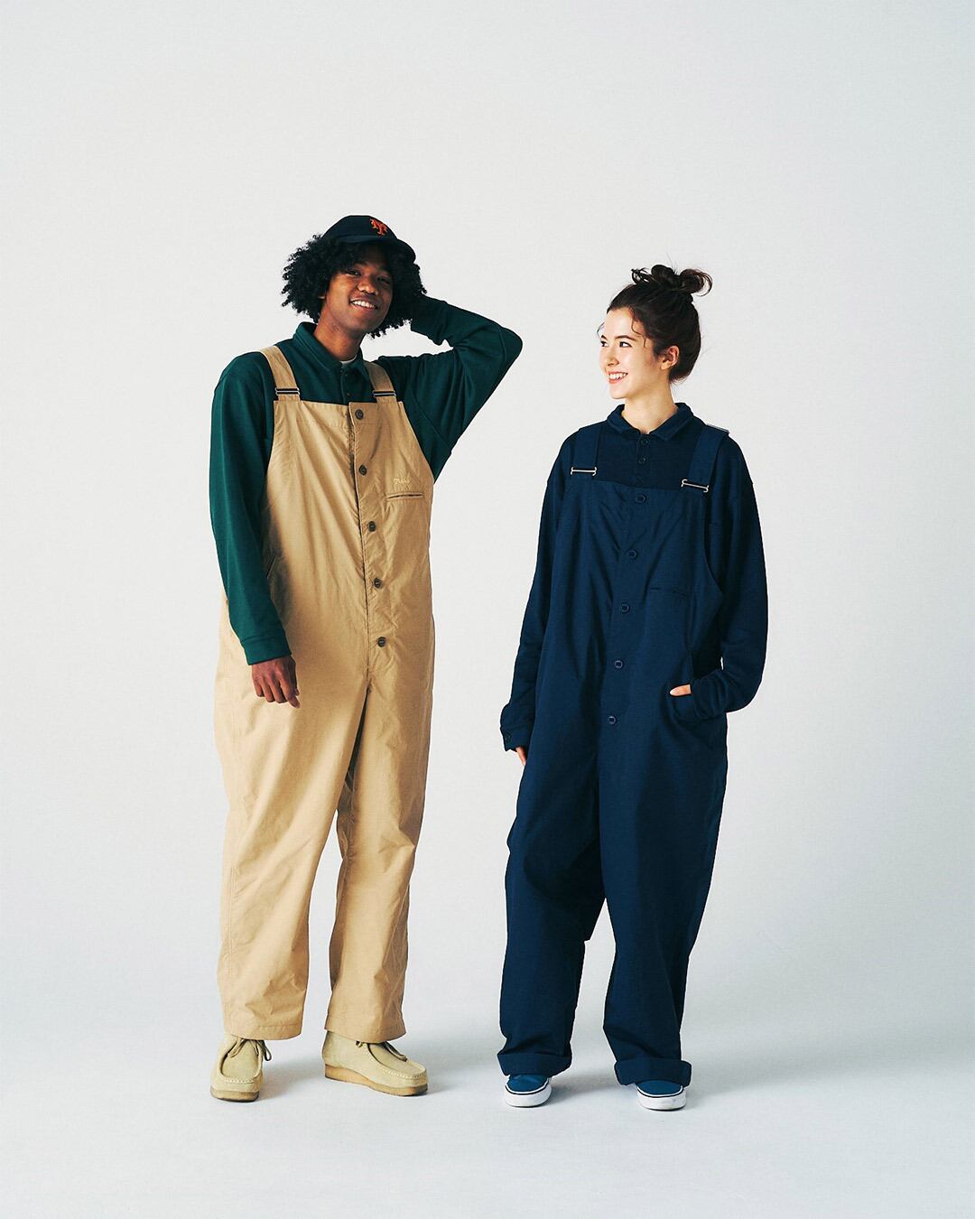 張り感の有る丈夫なナイロンコットン素材を使用したデッキパンツタイプのオーバーオール。